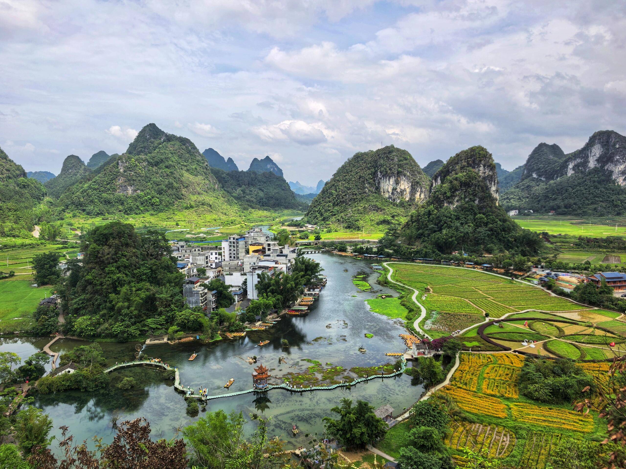 ■中午 :一路欣赏美丽的边境公路【合那高速】,品尝当地特色午餐后,我们来到【旧州景区】,世外桃园般存在,旧州古镇-中国的绣球之乡,有600多年历史;