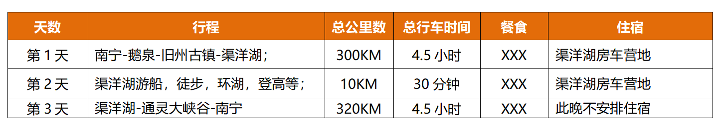 房车租赁:上汽MAXUSRV80 C型房车3天使用费,含车辆清洁费; 房车布草:定制房车布草,床单,被子,枕套等; 景区景点:旧州古镇/鹅泉/渠洋湖游船/通灵大峡谷; 用餐安排:全程不含餐; 房车露营:包含2晚渠洋湖汽车营地,停车费及用水电服务; 贴心保障:含车辆保费免赔保障+车损免赔保障(免赔额度1万)+旅游人身意外保险; 精致露营:含户外蛋卷桌+露营椅子(含一桌四椅),户外露营星星灯50米一串;卡式炉1个; 儿童说明: 1岁-12周岁,12岁以上儿童视为成人,按成人价收取费用。 儿童包含:全程所示门票+房车座位费+行程中所含营地费用+保险费及其他杂费(车辆保险,保障等费用均摊);