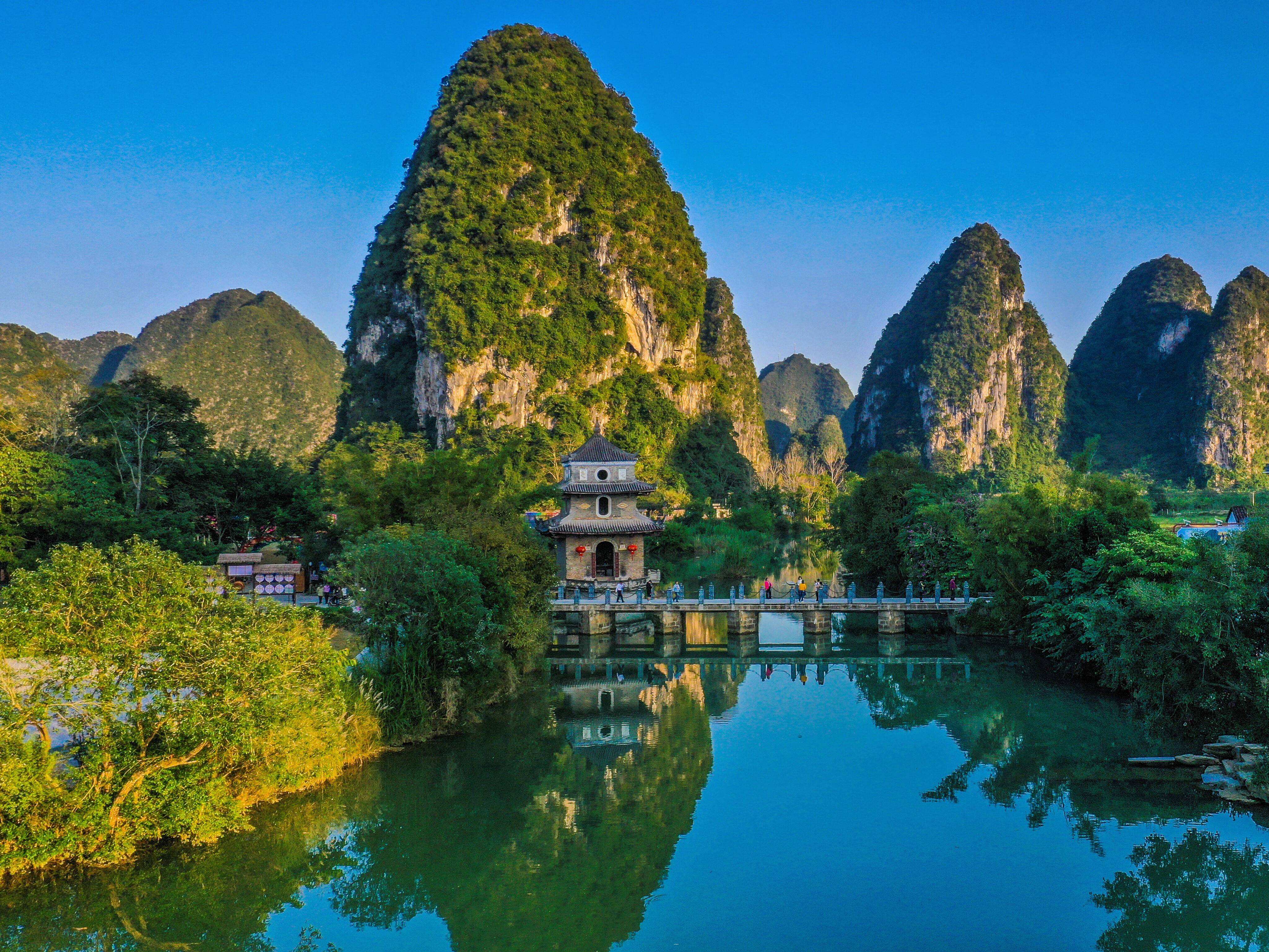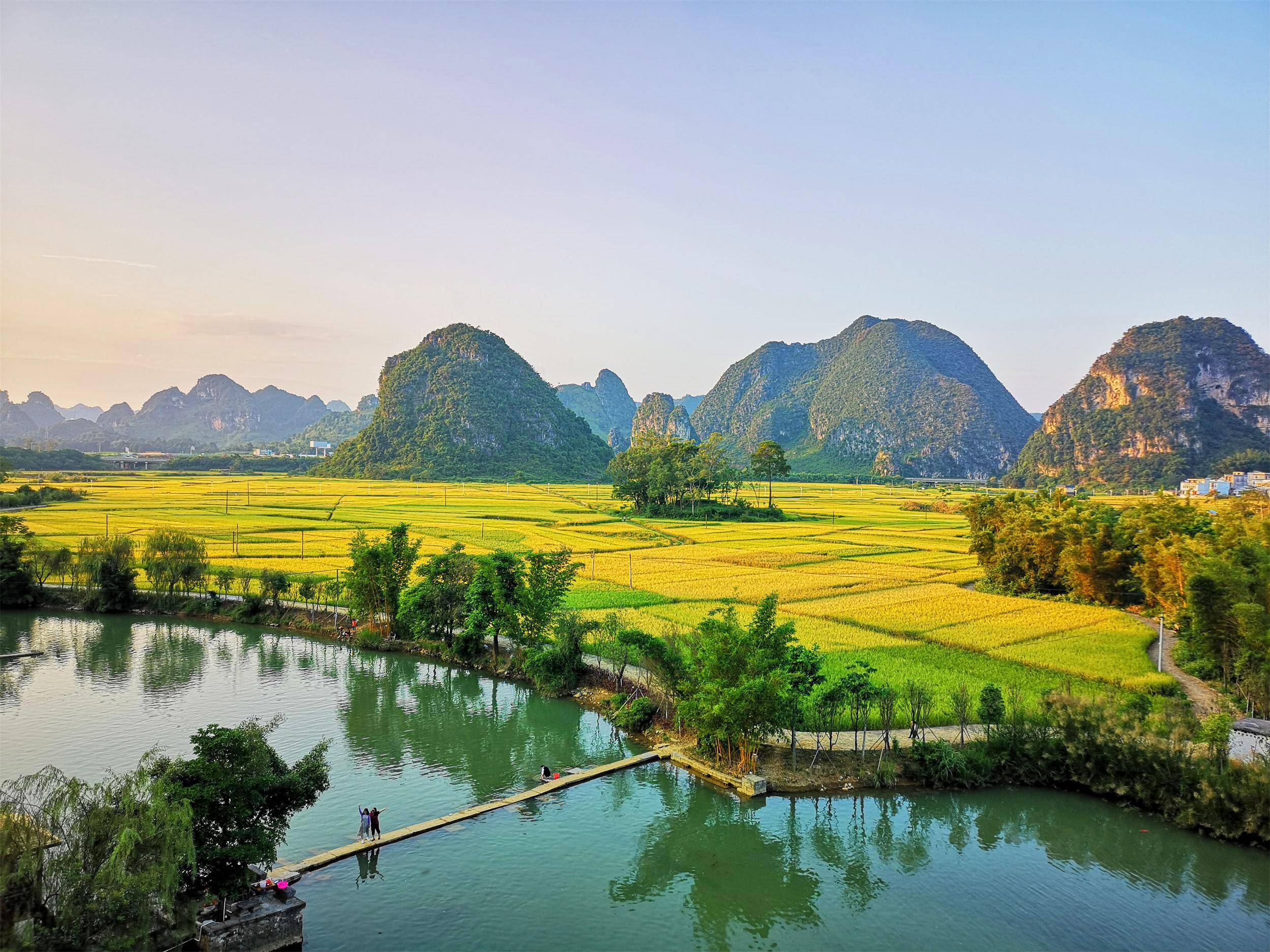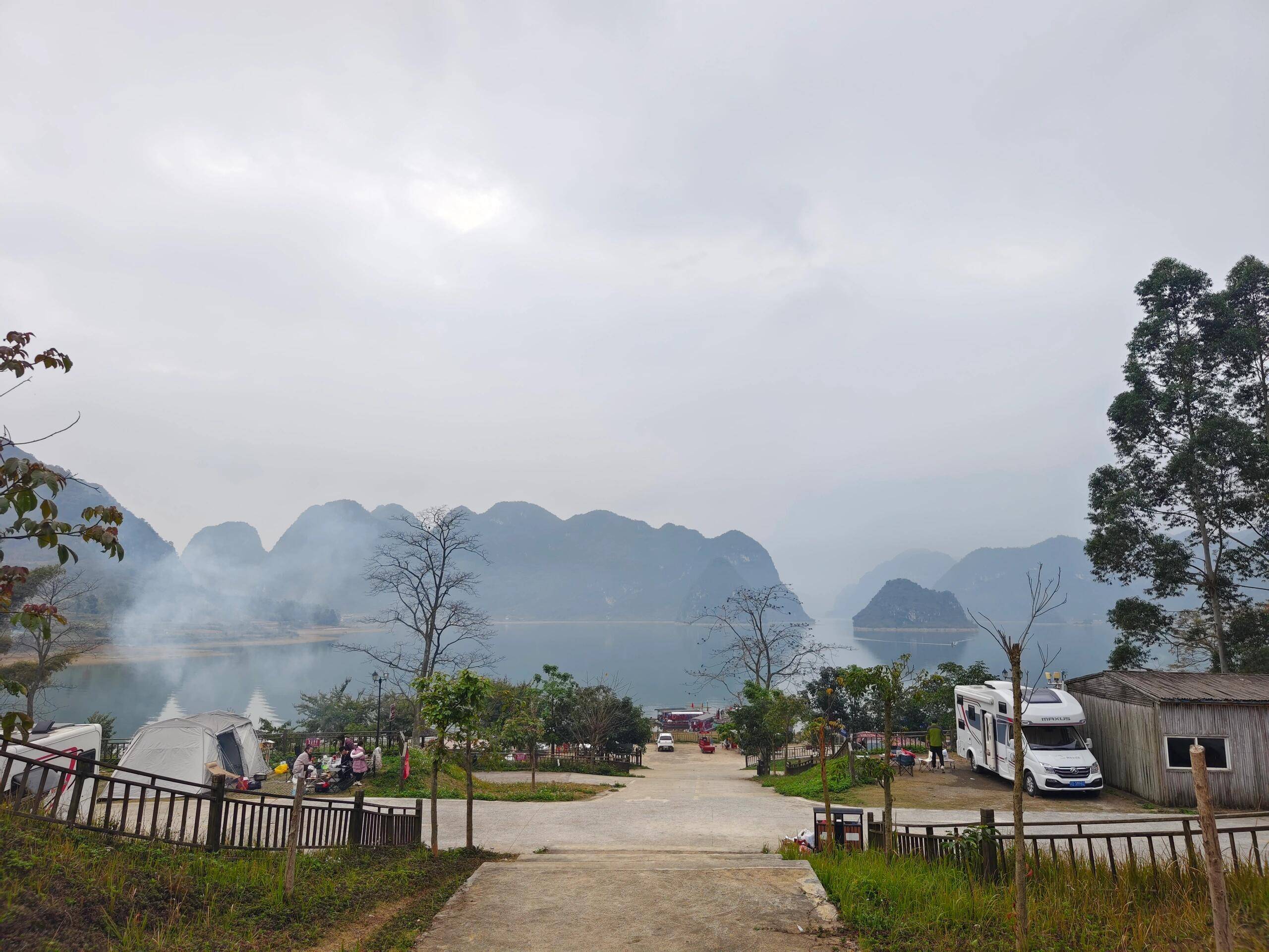 ■上午: 在坡谷营地房车露营,是把“家”安在渠洋湖山水里的惬意体验——推开车门就是青黛色的喀斯特山影倒映湖面,清晨被鸟鸣和湖面微风唤醒,完全抛开城市喧嚣;自由安排好早餐后前往【岜旗屯观景台】,沿着台阶攀登,大约15分钟可以登顶,上层观景台人少可以拍摄到全景,看到秀峰如林矗立在湖上,很秀美很有意境,下层有棵歪脖子树,可拍摄“山水间的孤独感”大片;