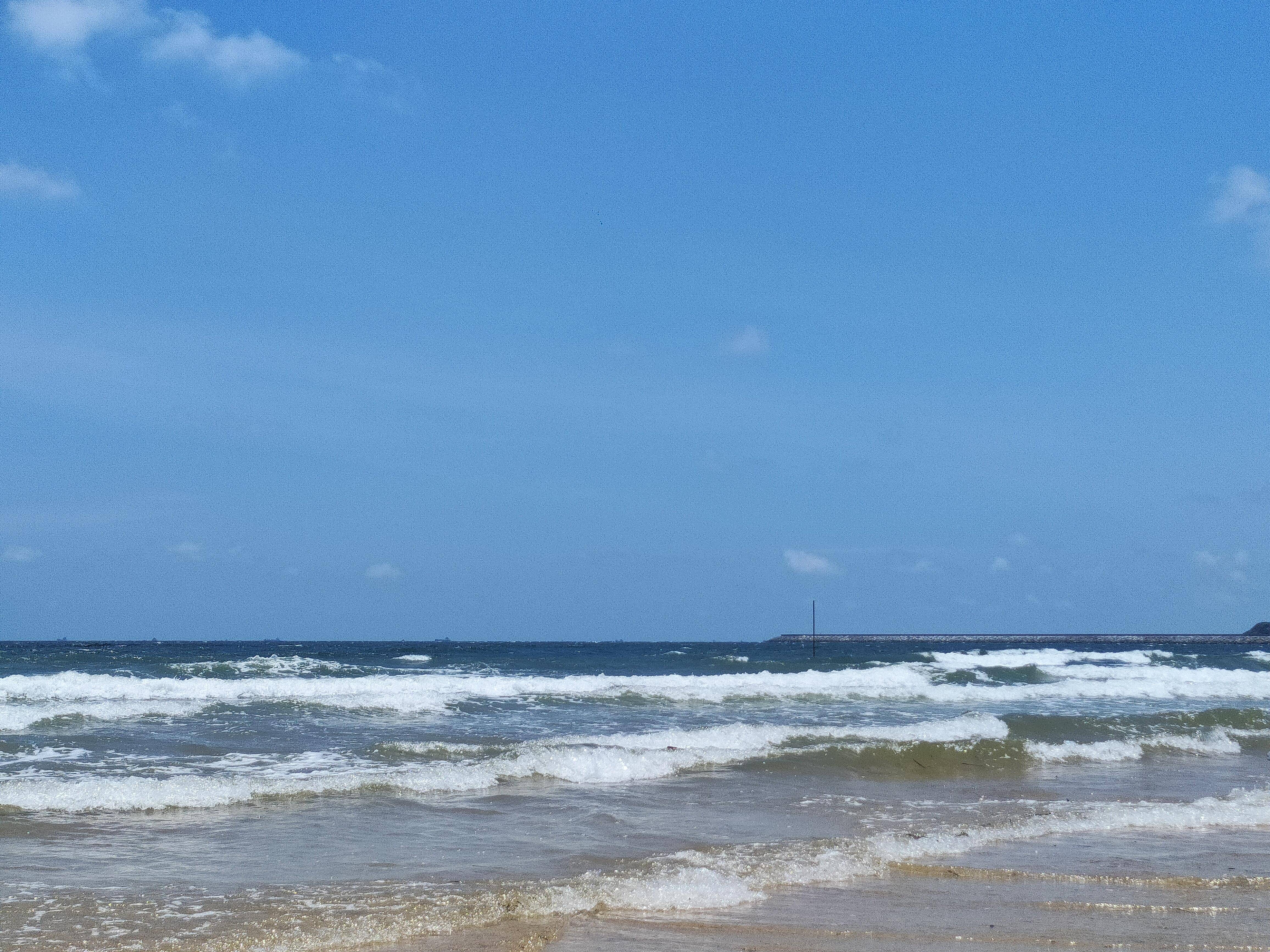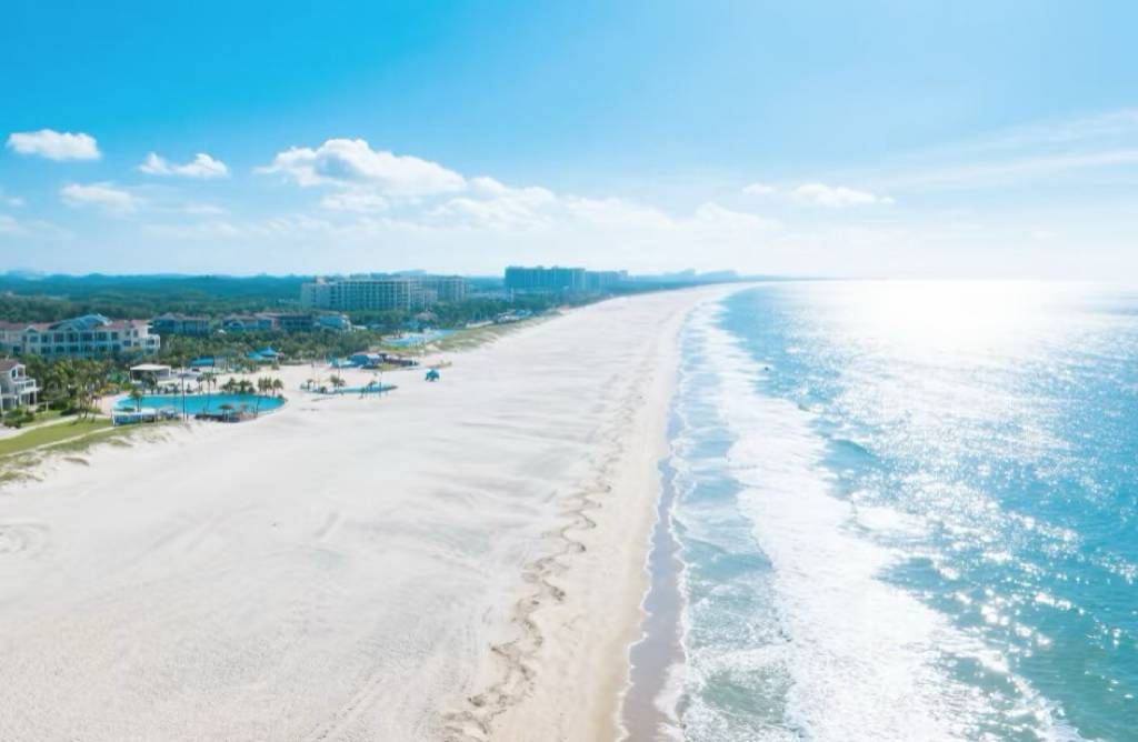 ■下午: 继续前往防城港抵达最干净,最细软的沙滩【防城天堂滩】,防城港天堂滩是隐匿于企沙半岛的海滨秘境,这里沙滩平缓细腻,海水清澈湛蓝,有着未经雕琢的原始之美。退潮时可赶海拾贝,涨潮时能乘船出海,清晨可观壮丽日出,傍晚可赏绚烂晚霞,充满自然野趣与浪漫气息。