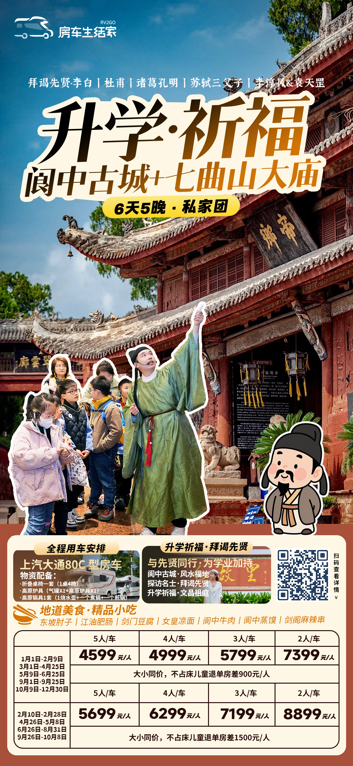 房车·升学祈福&探访先贤丨成都+三星堆+文昌祖庭+阆中古城+剑门蜀道·6天5晚私家团