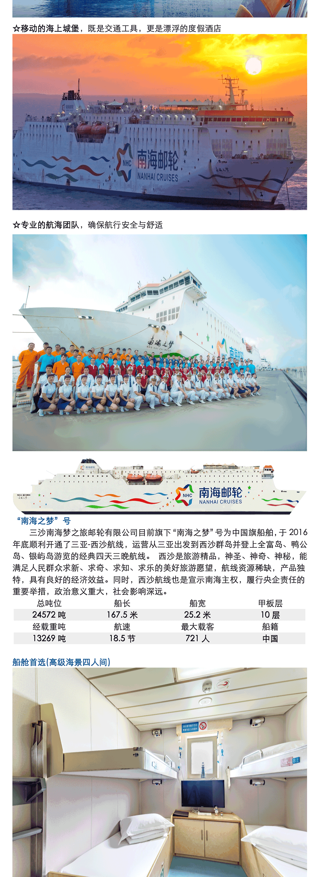 西沙绮梦·三亚+西沙邮轮6天5晚(南海之梦号版)