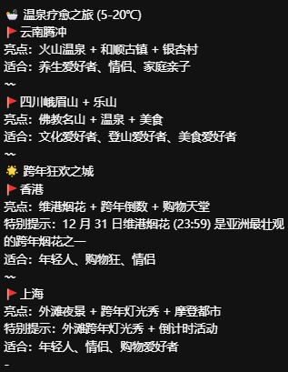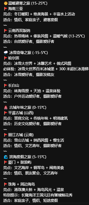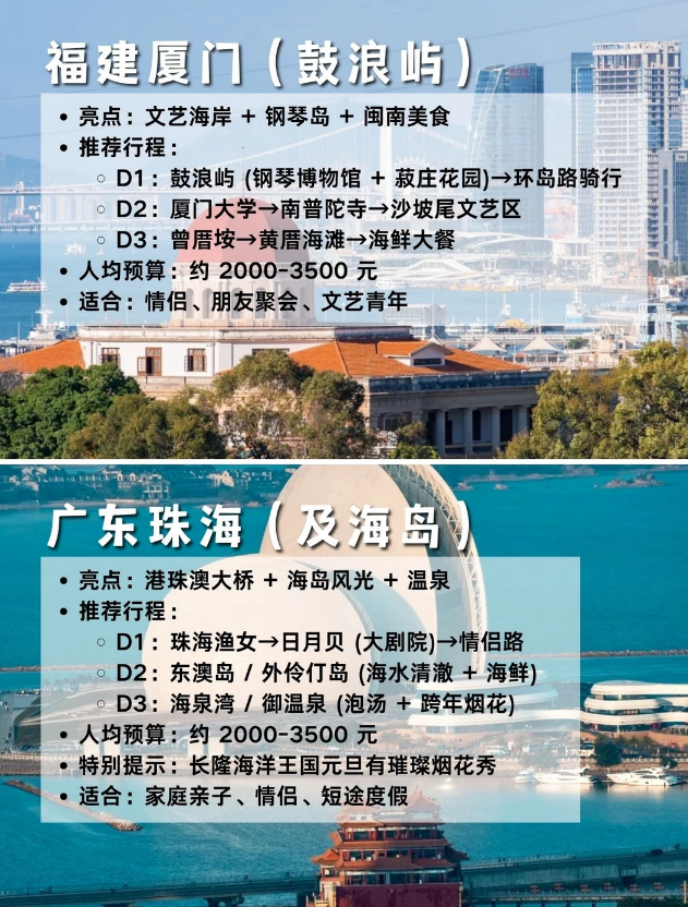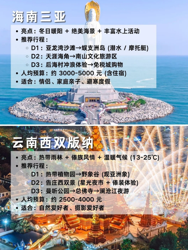 元旦假期终于定下来啦!3 天时间不长不短,整理了超适配的目的地清单,不管是想追雪、避寒还是躺平摆烂,都能直接抄作业~ 交通便利 + 玩法明确,新手也能轻松冲👇