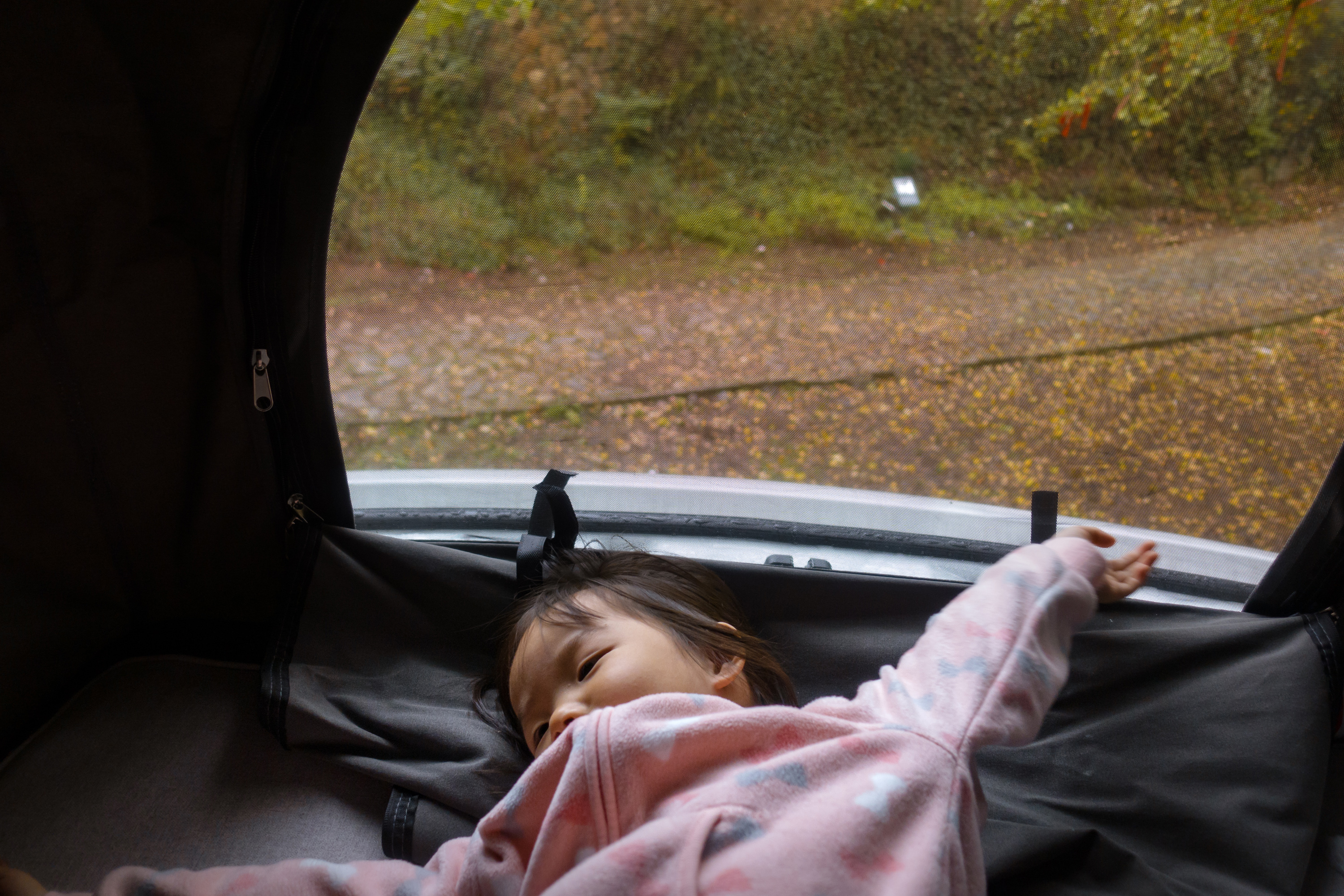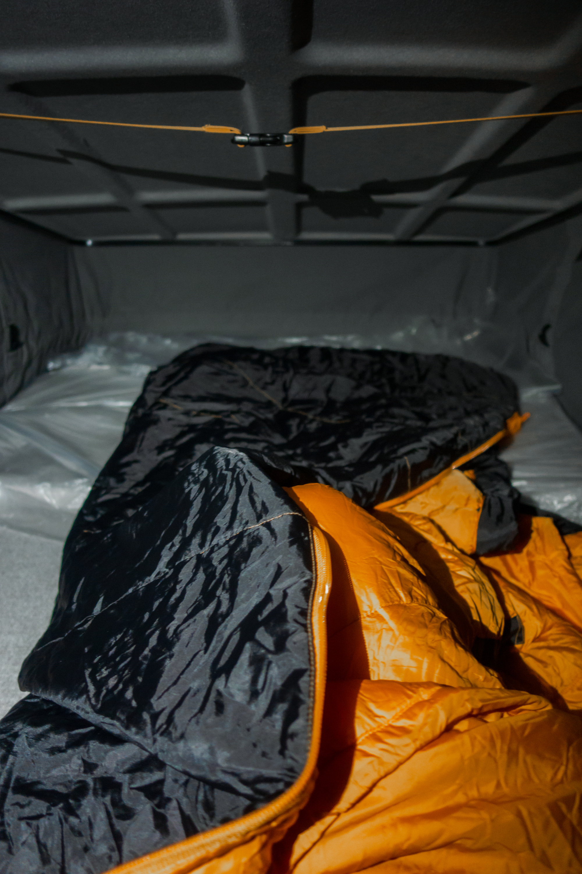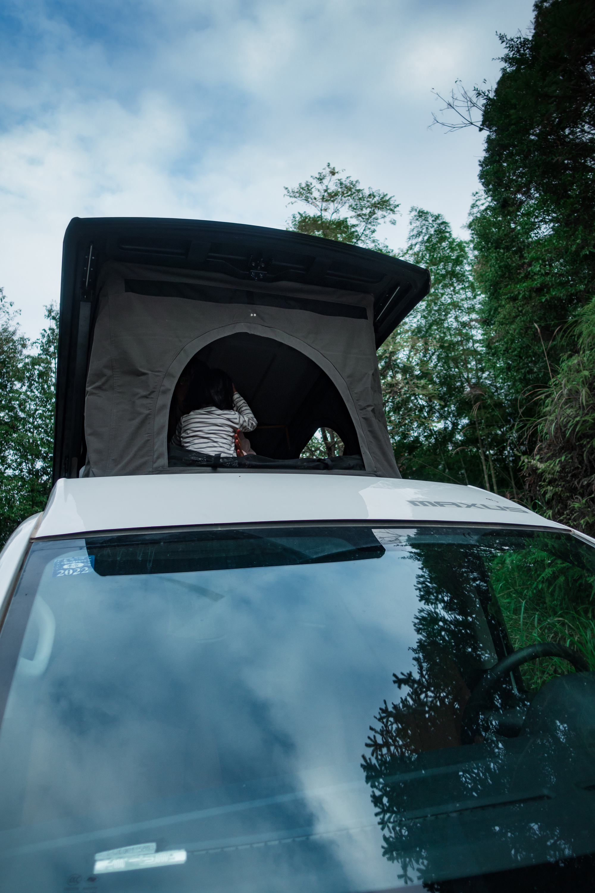 再说升顶层:升顶层上面有一层薄薄的床垫,睡起来不会感觉太硬。有三个侧面。每个面都有一个带窗帘的窗口,并且有一条程带状的透气口环绕在三个侧面上,睡觉时把窗帘拉上也不会觉得闷。听着雨水滴落的声音,我们都进入了梦乡…