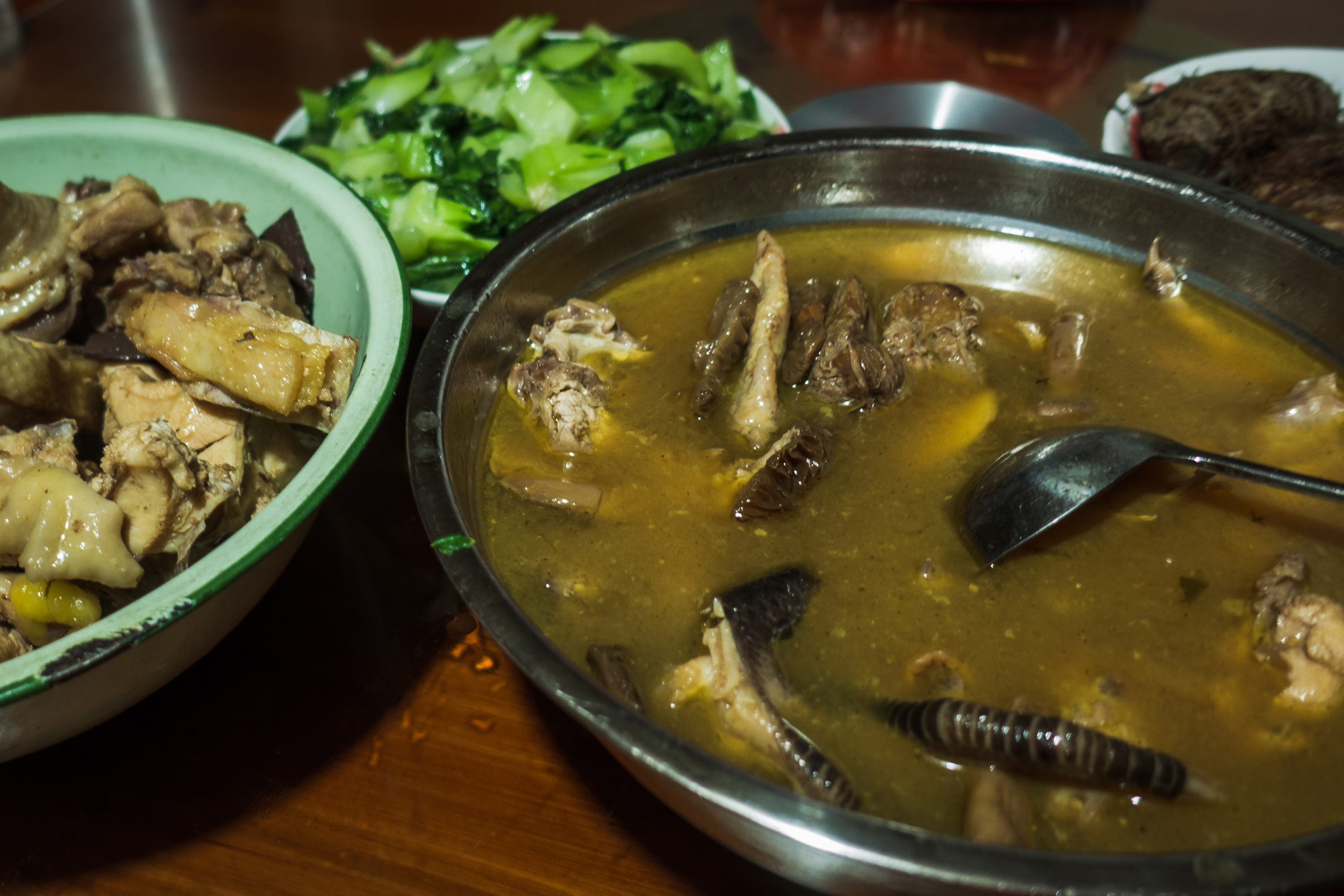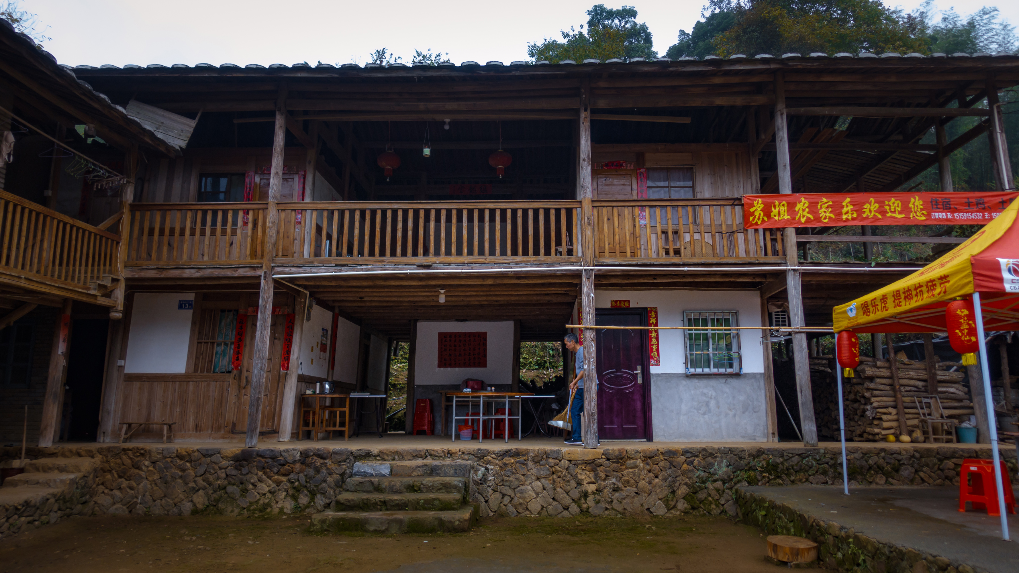 距离尤溪县30公里左右居然开始下雨了,淅淅沥沥的小雨。山路崎岖加上下雨起雾,为了安全起见车速不敢太快,到达龙门场的时候天已经黑了,虽然才18点。到了以后我们找了一家农家乐,古朴的民居,热情的老板,美味的土鸡,把路途的疲惫感都消除了。