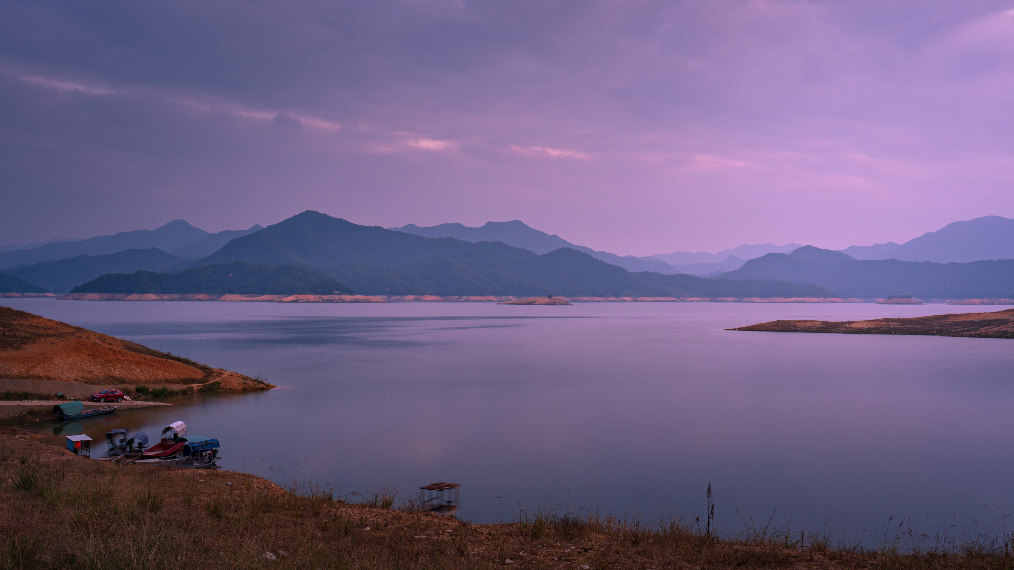 沿着县道一直开,沿途的风景亦是非常美妙,像中国画般的壮丽山河不断地呈现在我们的眼前。傍晚5点左右,我们来到了今天的目的地闽湖水库边,刚好赶上晚霞的最后时刻。欣赏完晚霞我们找了水库边的一家水库鱼餐厅,享受了一顿美味鲜嫩的水库鱼。