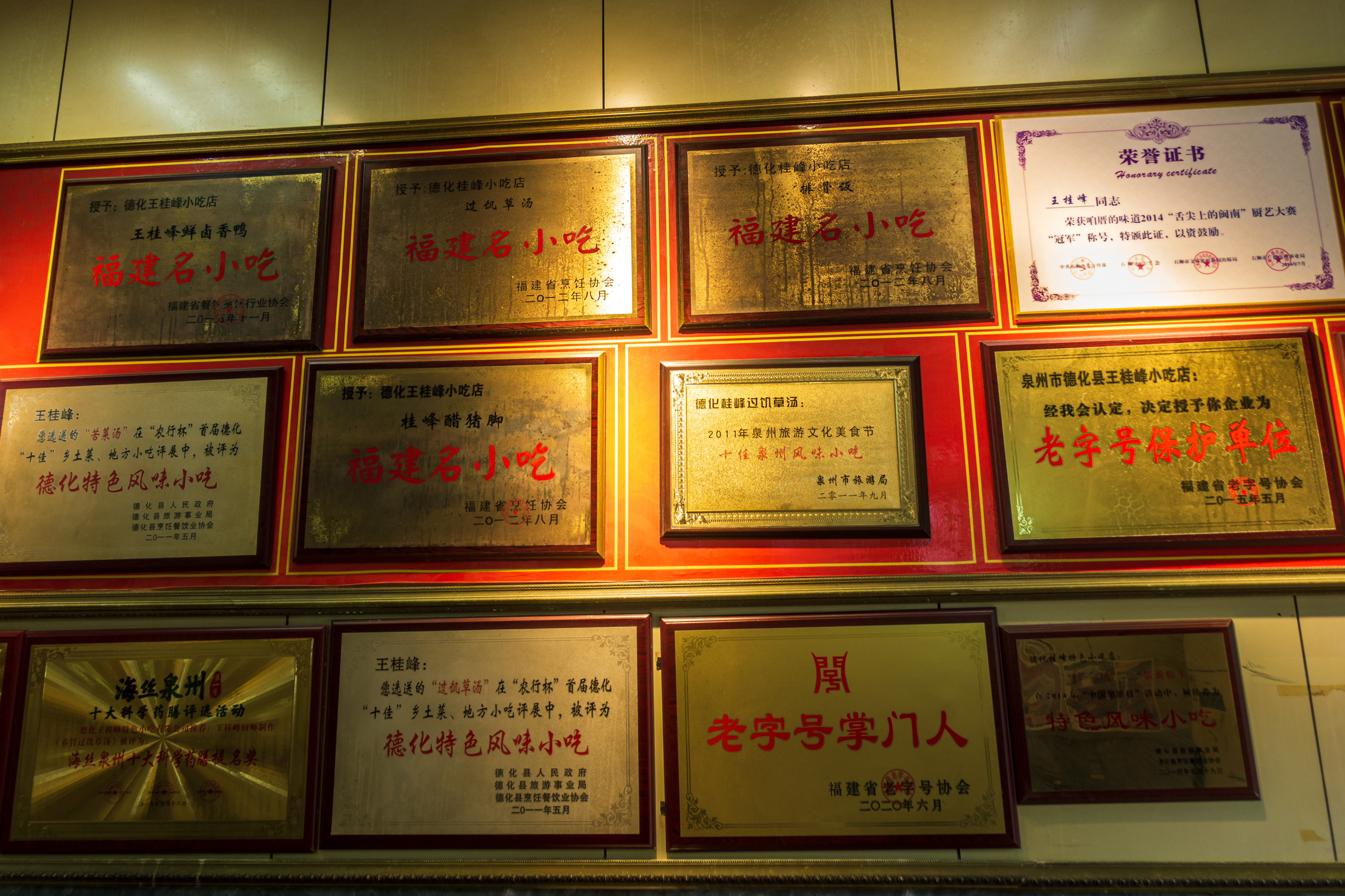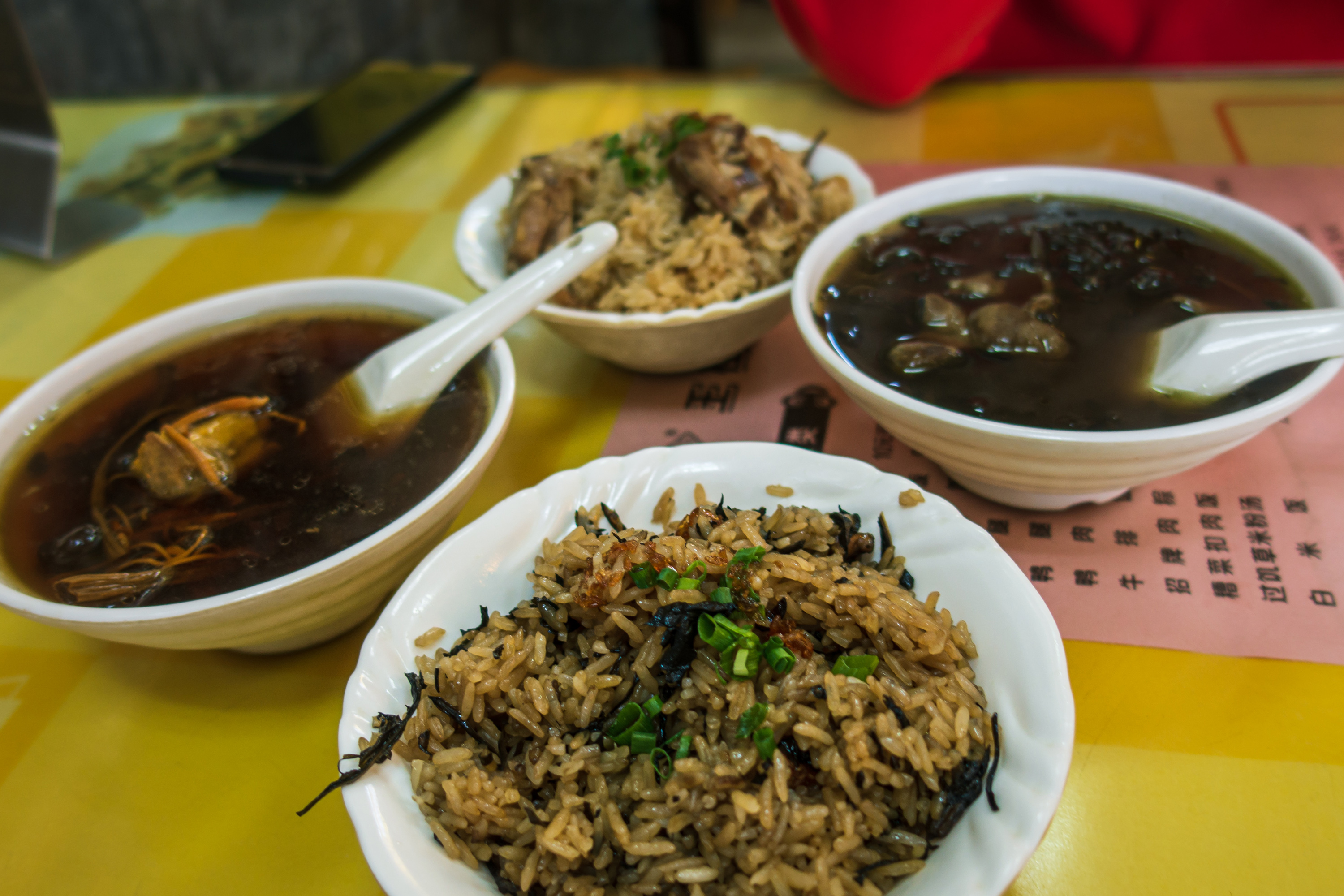 到达时已经是13点了,首先任务当然是填饱肚子啦。我们来到德化县一家本地的小吃店,店内墙壁上挂满了各种奖状,看来我们是找对地方了。点了店内的招牌排骨饭和苦菜饭,再点了两份汤,一些菜品,味道都非常不错!