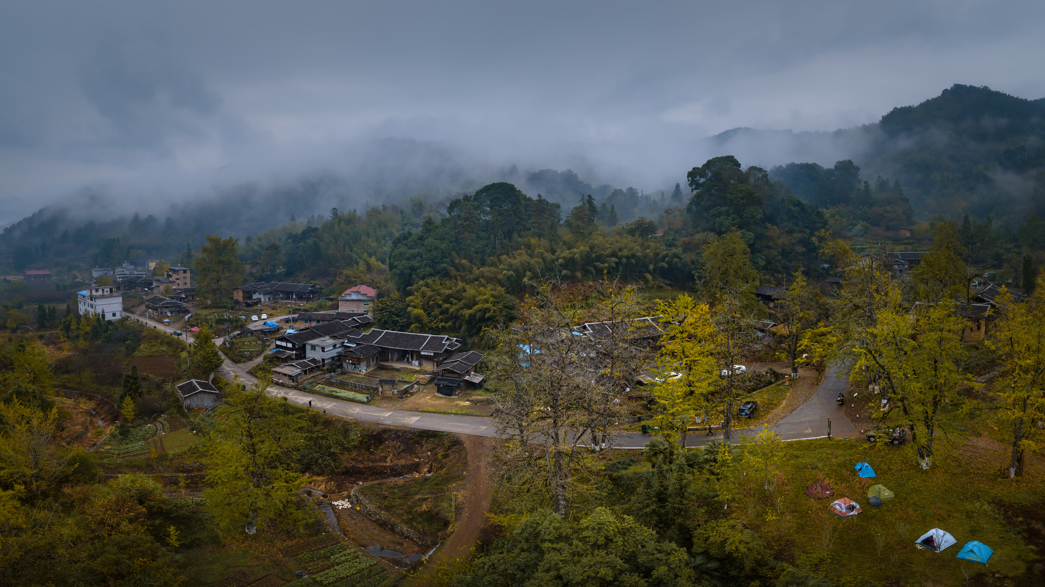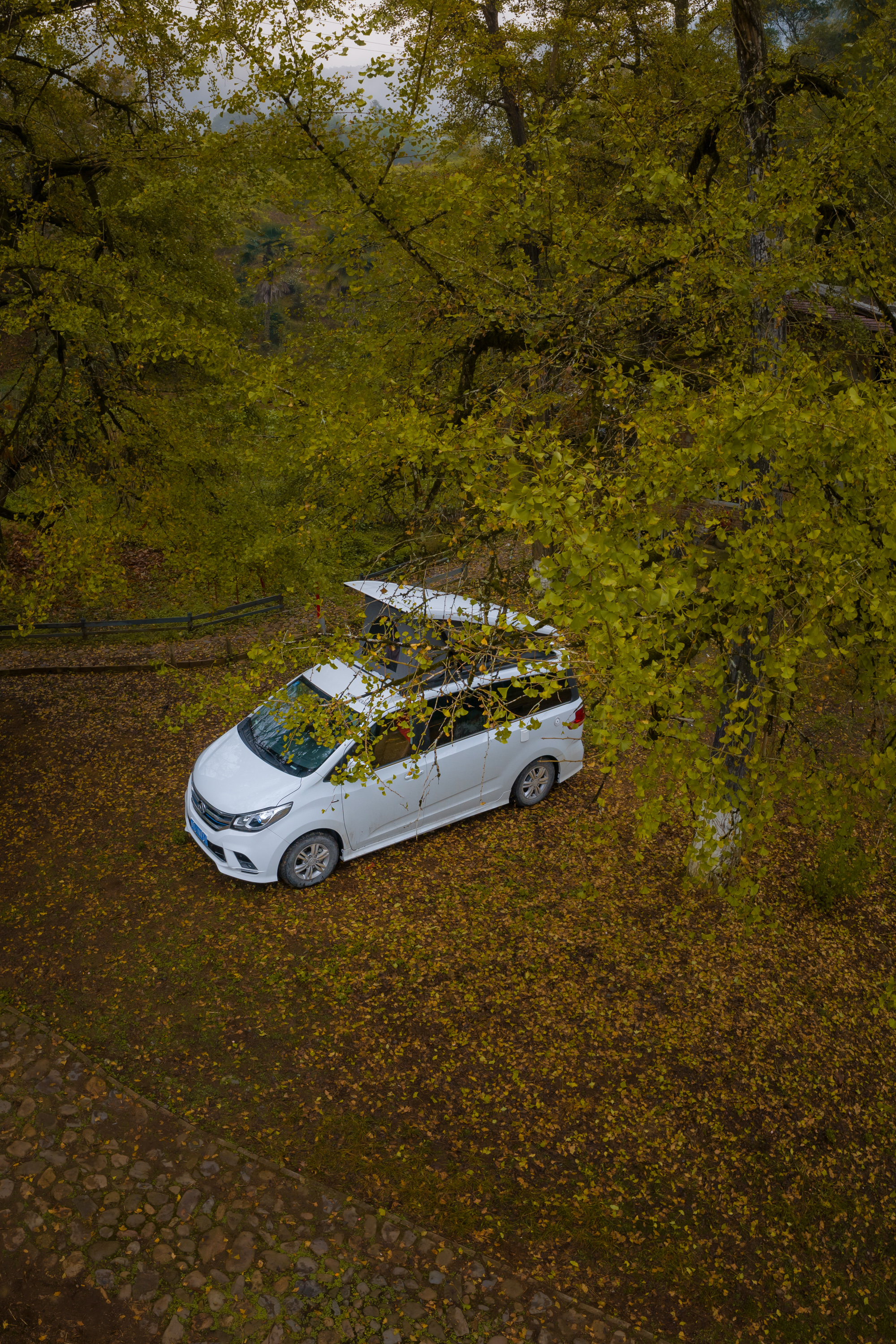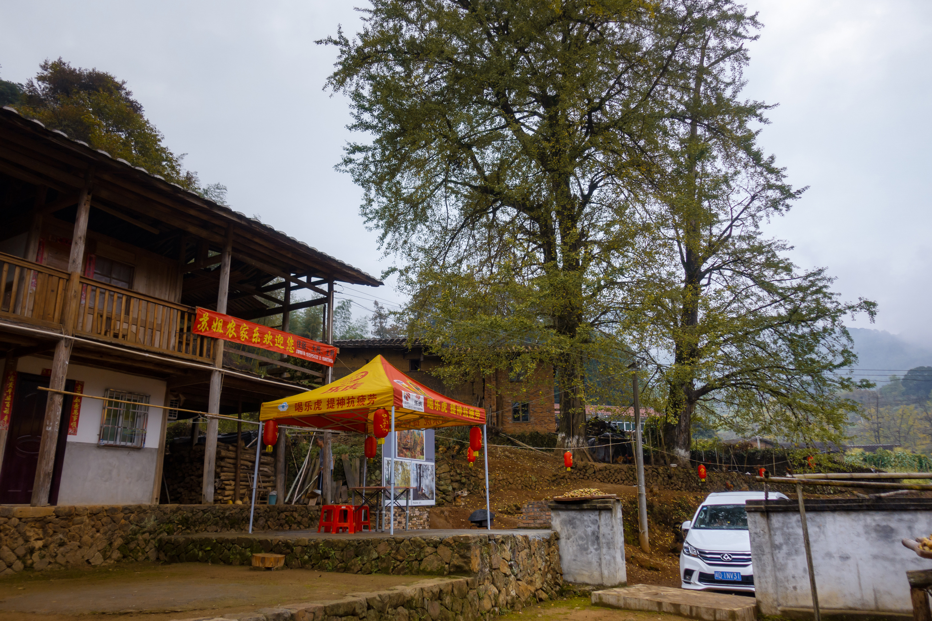 起来后简单洗漱,欣赏了一轮银杏林后我们又再启程了。昨晚下了一晚上的雨,早上出发的时候沿途都是云雾缭绕的青山风景,分外好看。