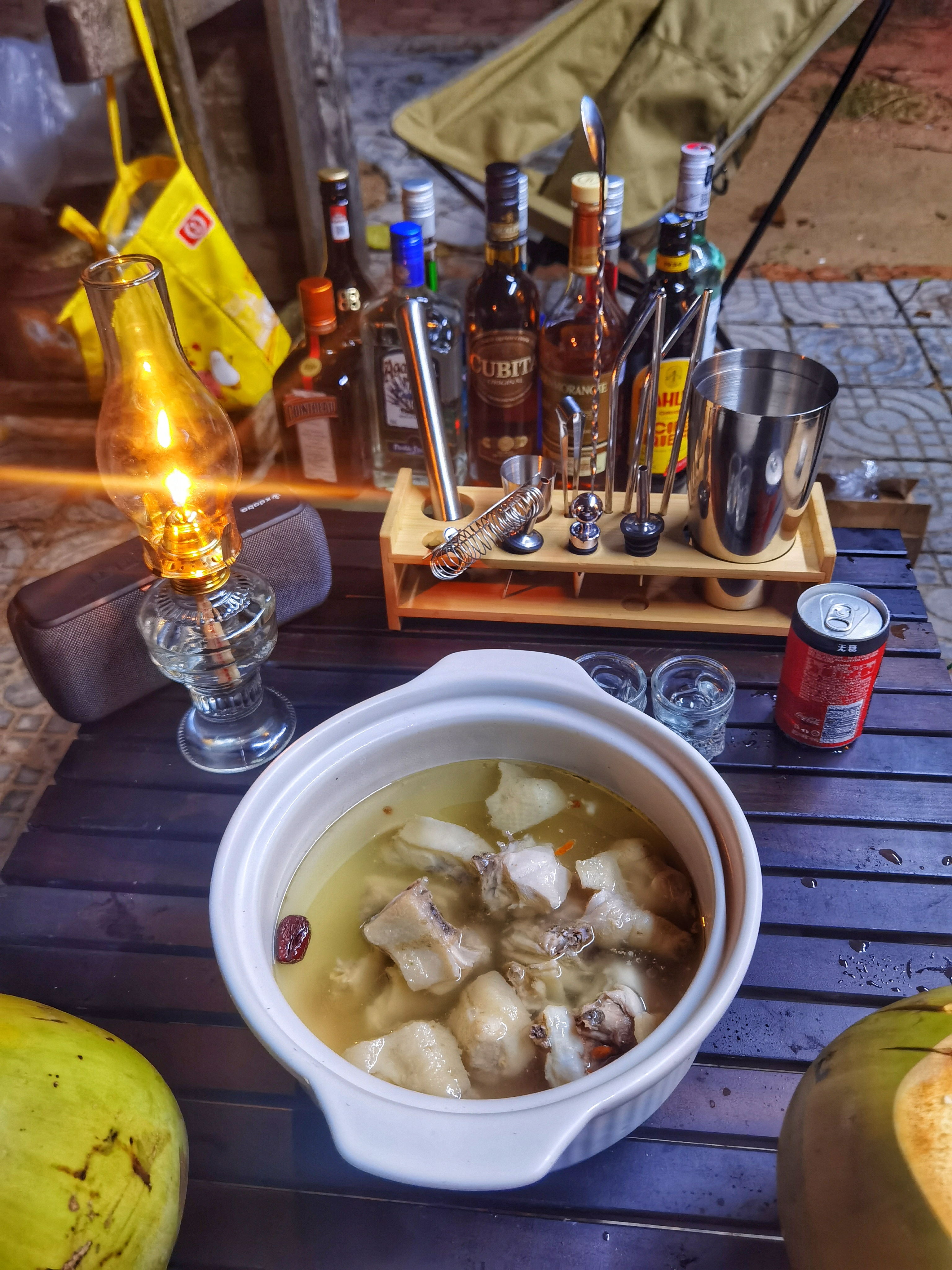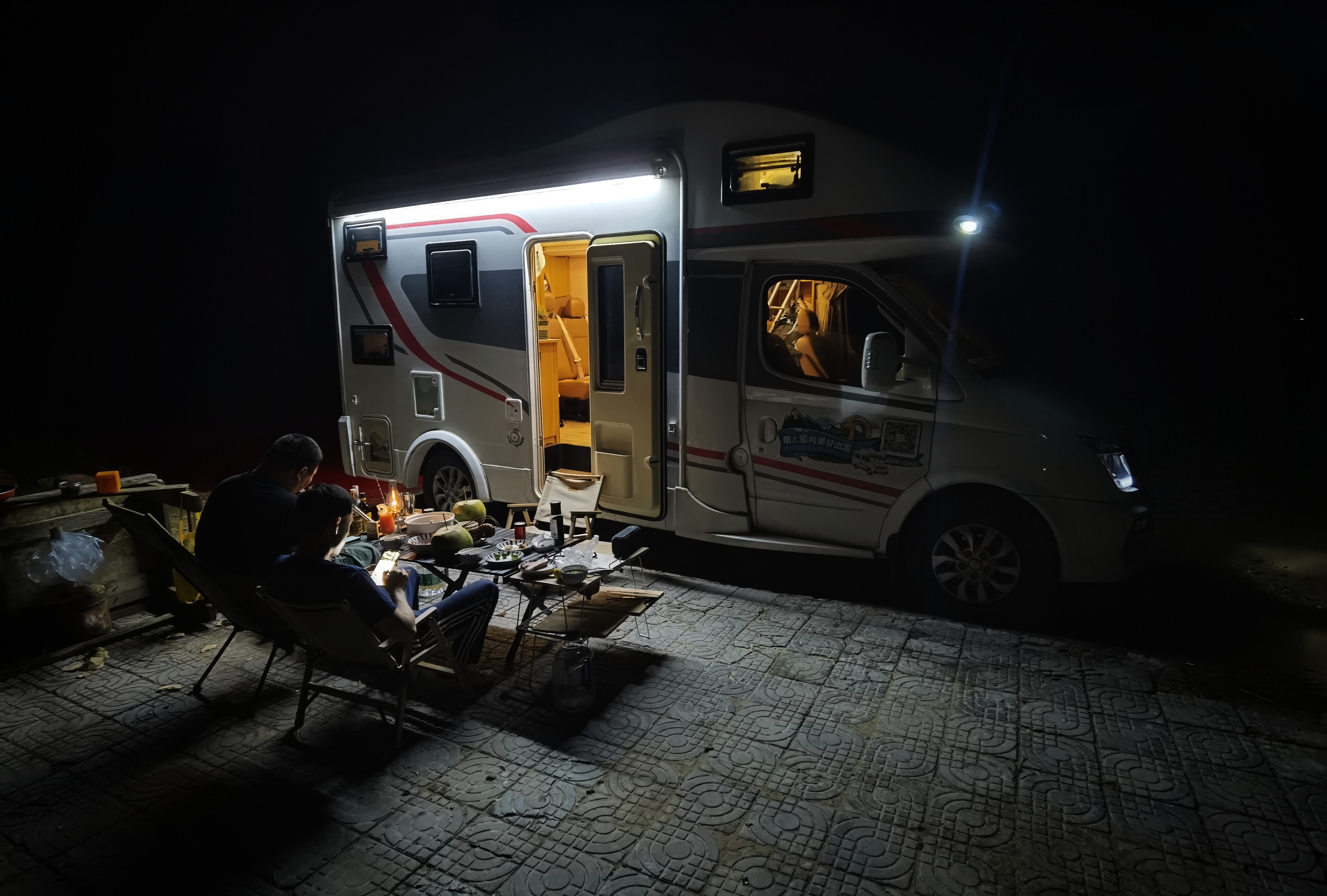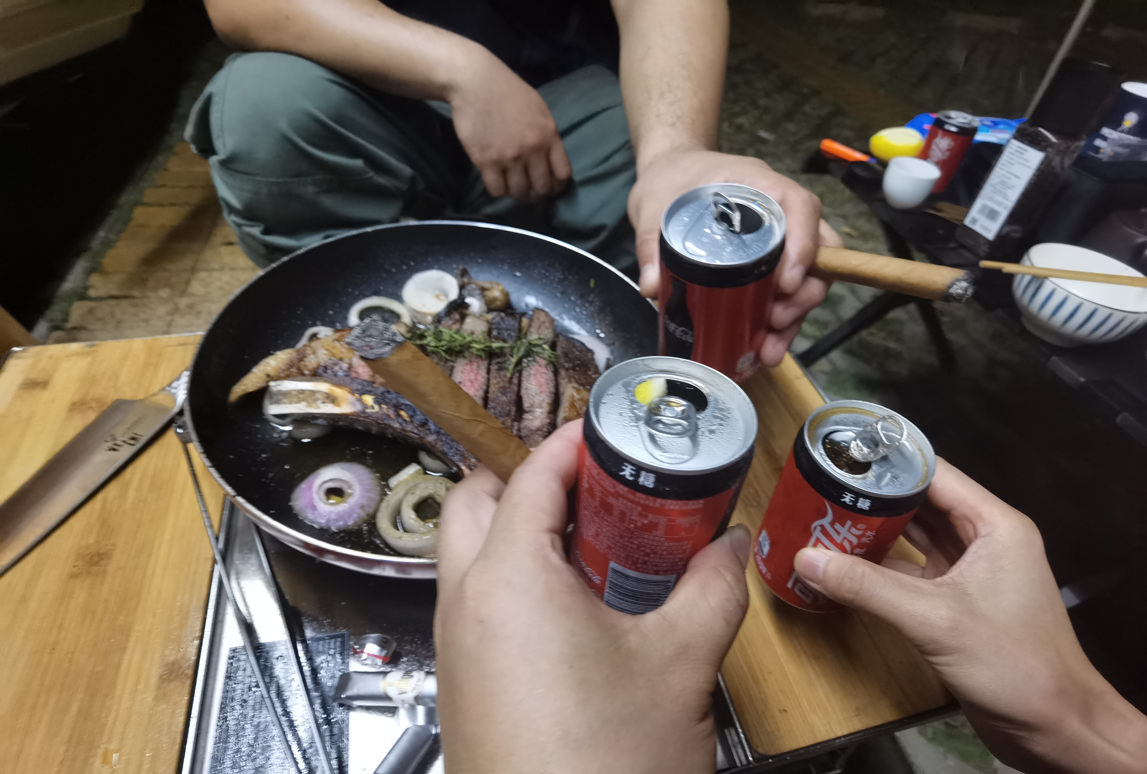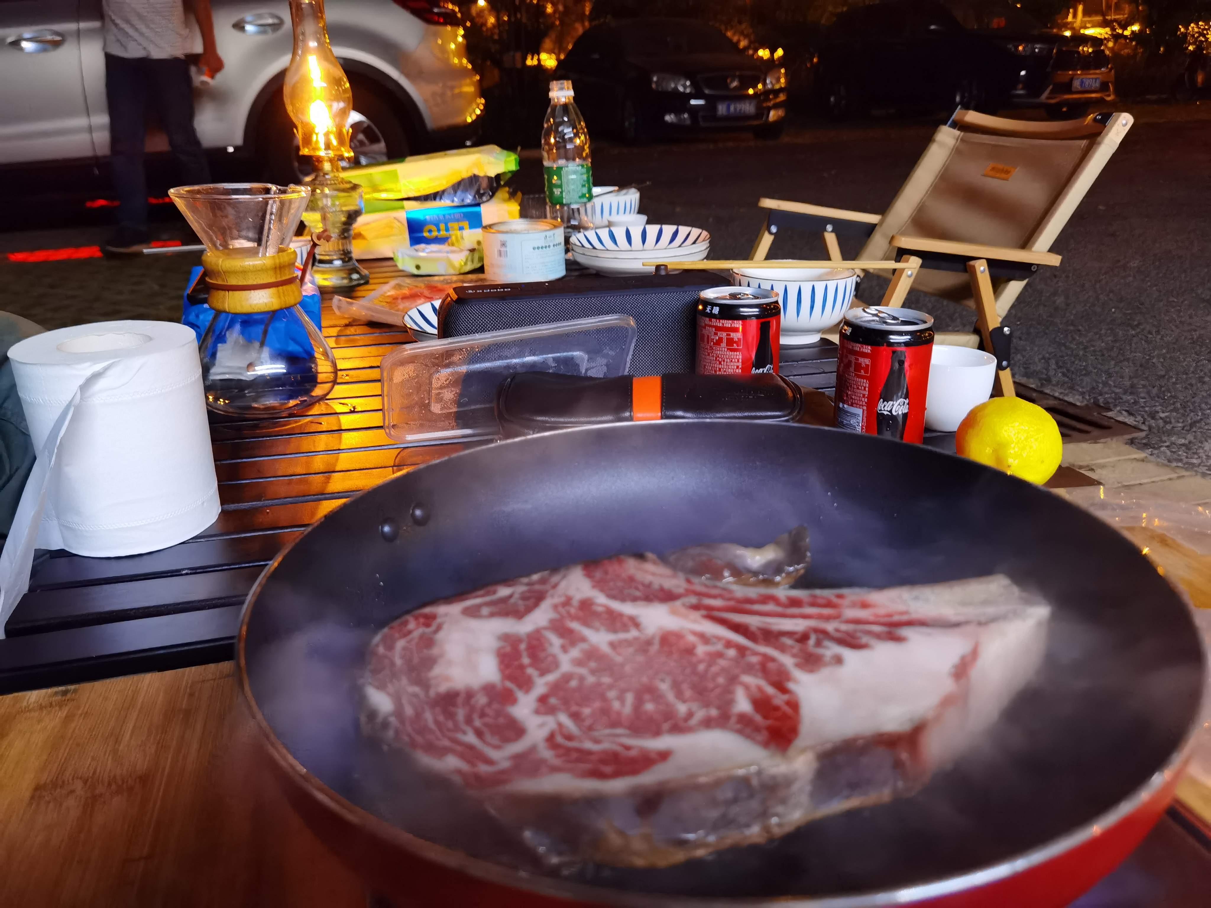 晚饭在海花岛边上的大桥下面 有个公共停车场,摆好摊头开始喝茶做饭,看着日落,吃着自己做的干式熟成45天安格斯战斧。惬意的不要不要的。