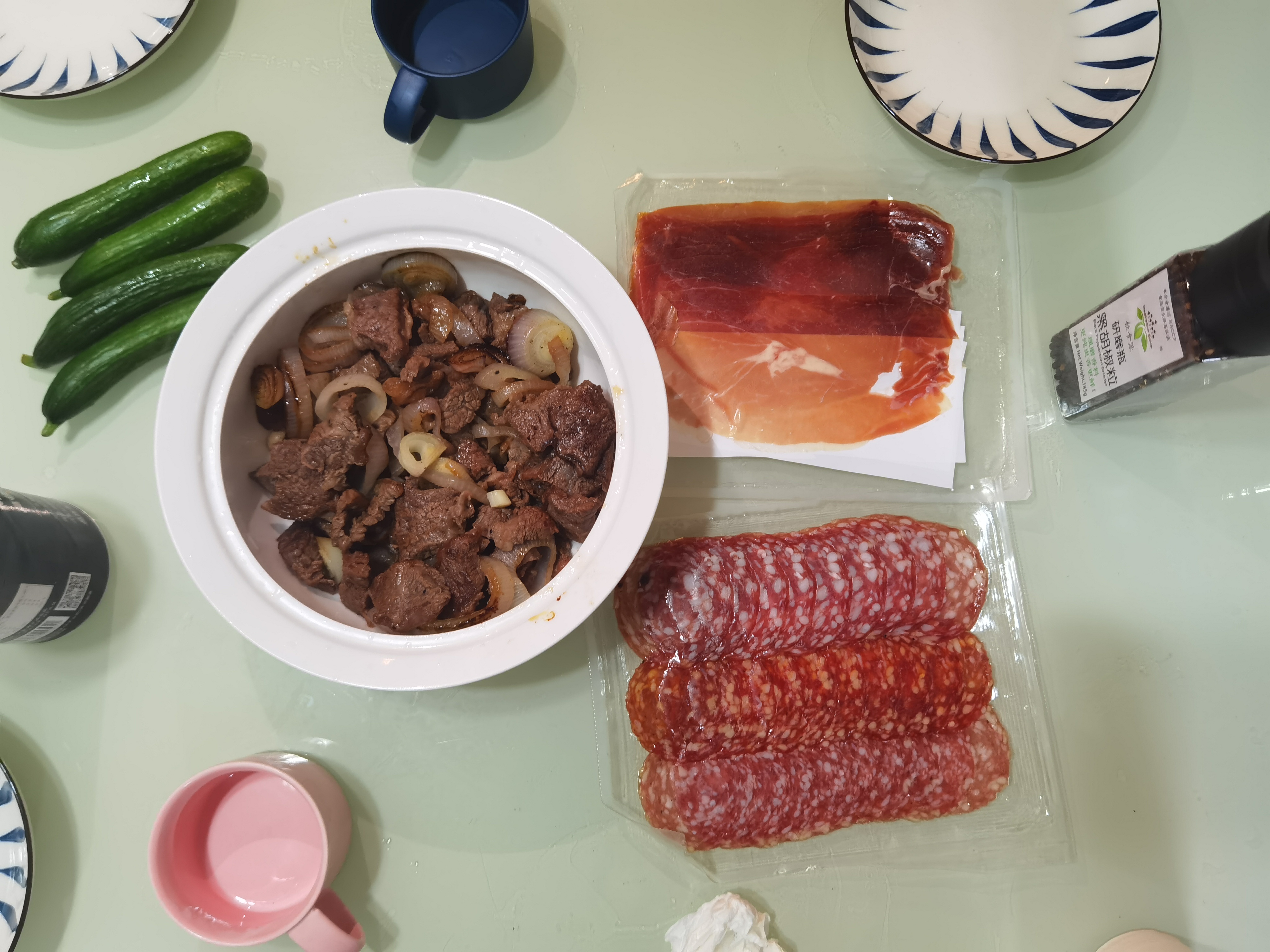 晚餐是这次最奢侈的一顿了,因为多下来的肉要全部吃掉。